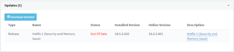 Click on the “Updates” from your Management Console in the Dashboard, Select “Hotfix 1 (Security and Memory Issue)” to install this update on your PBX.